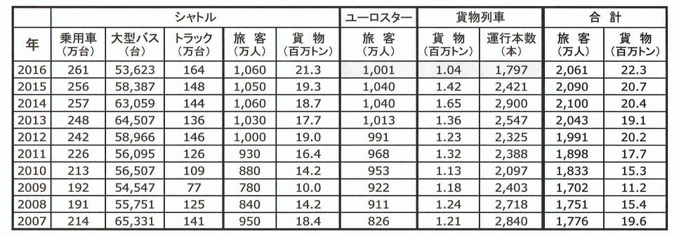 | NEW 英仏海峡トンネルの10年間の輸送実績(2007年~2016年) |